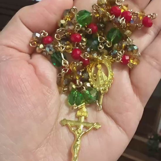 A beautifully crafted festive rosary made of colorful crystal beads; each one delicately attached to shimmer with warmth and grace. Inspired by the light of Christ at Christmas, this rosary invites peaceful prayer, gentle reflection, and a deeper sense of God’s presence during the season of hope.